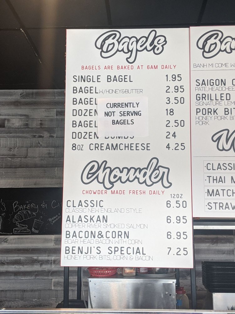 Welcome to Benji's Bakery & Cafe, a delightful haven nestled in Anchorage, AK, where delectable flavors meet a warm, inviting atmosphere. Specializing in freshly baked goods and savory sandwiches, Benji's is a go-to spot for both casual diners and groups looking to enjoy a satisfying meal. The menu flaunts a range of mouthwatering choices, including the exceptional Banh Mi, with options such as Grilled Pork and Saigon Classic, which have garnered rave reviews for their tantalizing taste.